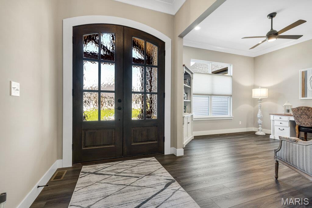 Welcome to this stunning 3.5-year-old modern ranch offering the perfect blend of timeless design and today’s energy-efficient living. With 3 bedrooms, 2.5 baths, an additional office space, and striking curb appeal, this home makes a lasting impression from the moment you arrive. Step inside to a thoughtfully designed open-concept floor plan featuring beautiful floors, abundant natural light, and high-end finishes throughout. The show-stopping kitchen is truly the heart of the home, showcasing quartz countertops, 42” cabinetry with crown molding, an extended center island, stainless steel appliances, built-in microwave, gas cooktop with designer vent hood, stylish tile backsplash, and modern black hardware. The inviting great room features a cozy gas fireplace, custom built-in bookcases, and seamless access to the screened-in porch perfect for relaxing or entertaining. The spacious primary suite offers a tray ceiling, recessed lighting, sliding barn door, and a huge walk-in closet. The luxurious primary bath enhances the spa-like feel with beautifully designed finishes and ample space. The partially finished walk-out lower level features a 10’ pour, providing impressive ceiling height along with additional living space and room to expand. Just off the 3-car garage, a convenient cubby/drop zone keeps life organized, while the spacious 3-car garage and irrigation system add both functionality and value. Why wait to build when you can move right into this like-new home? Schedule your private showing today!