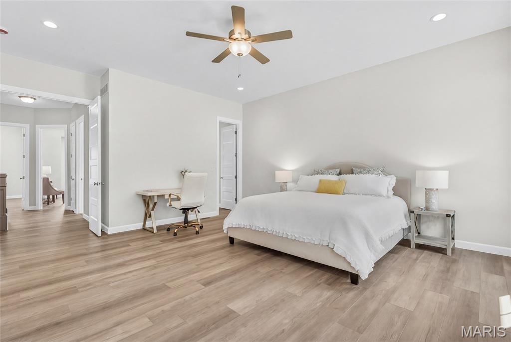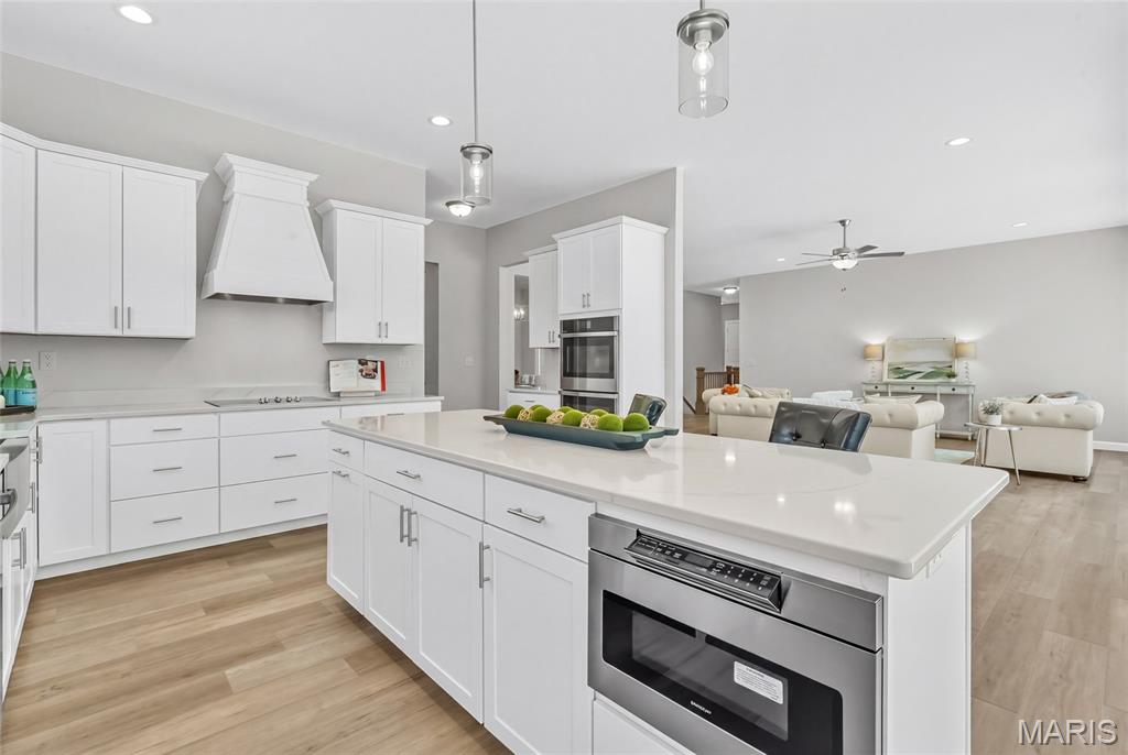 Move-In Ready! SOD COMING SOON! Welcome to The Dogwood — a striking new 3-bedroom, 2.5-bath ranch home set on 3 private acres at the end of a wooded cul-de-sac in The Estates at Schaper Farms. This beautifully crafted Jaeger Builders home blends refined design with the peaceful acreage lifestyle buyers love. Offering 2,720 sq ft on the main level, this thoughtfully designed plan features 10-foot ceilings, transom windows, and an open, light-filled layout. The great room flows seamlessly into a stunning kitchen complete with stainless steel appliances, double oven, cabinet hood, microwave drawer, farmhouse sink, soft-close cabinetry, and numerous upgraded finishes already included. Just off the foyer, a versatile flex room provides the perfect space for a dining area or home office. Step through the slider to a patio overlooking your private, tree-lined lot — ideal for outdoor living and even a future pool if desired. The walk-out lower level features a nine-foot pour and a rough-in for a future bath, offering excellent potential for additional finished space. Located in the Wentzville School District and conveniently close to highways, restaurants, and shopping. This home is complete and ready for its new owner — schedule your tour today and experience luxury acreage living at its best.