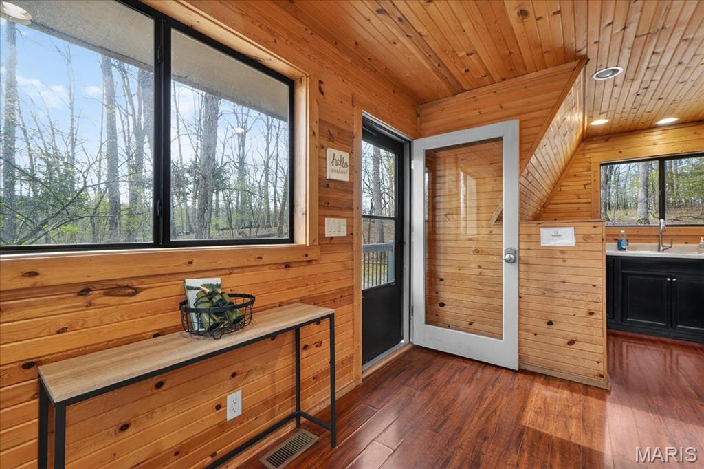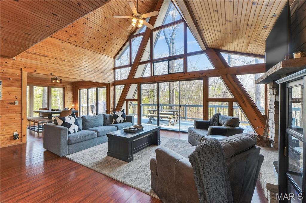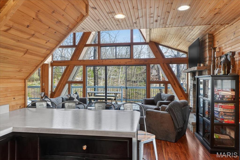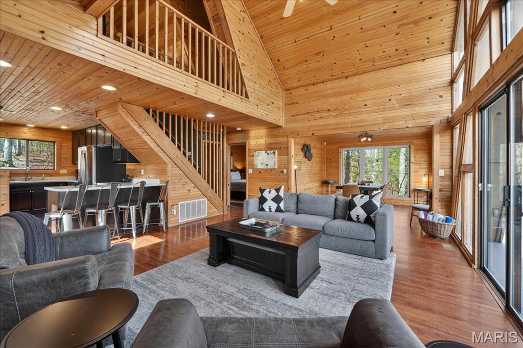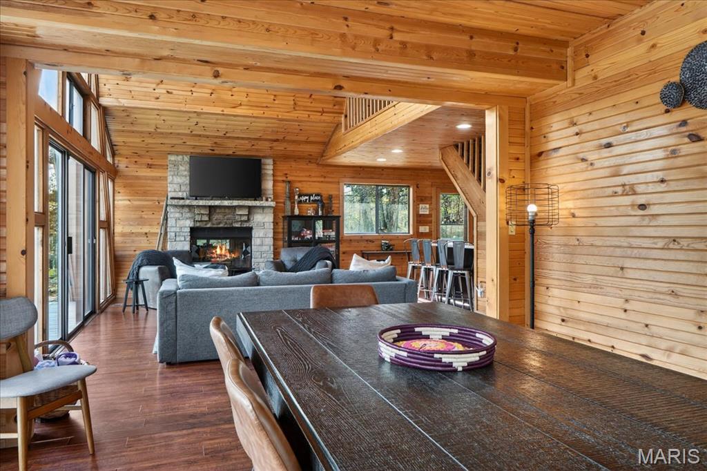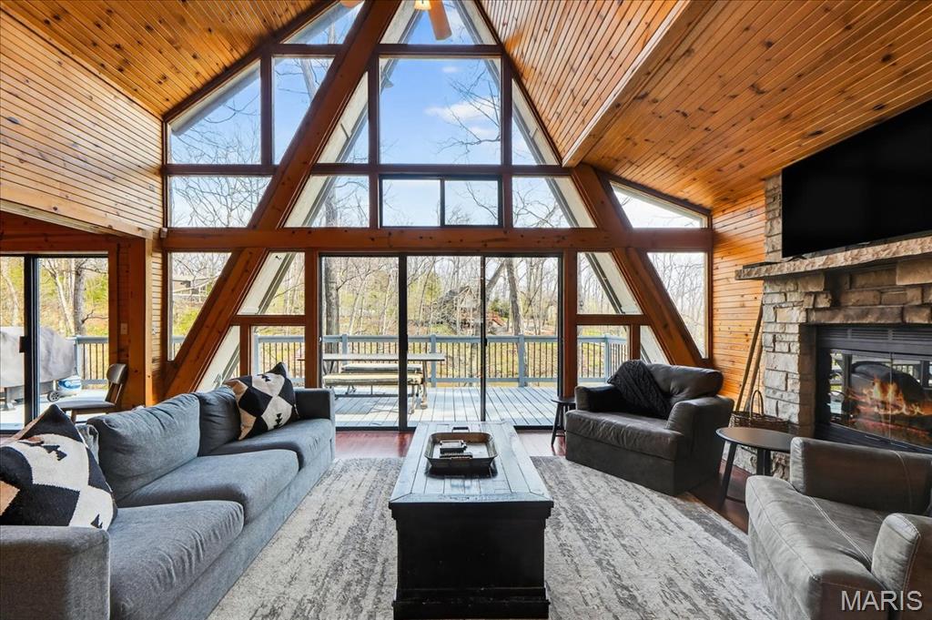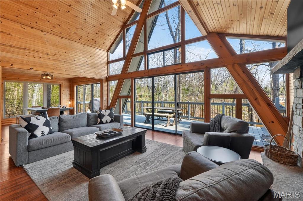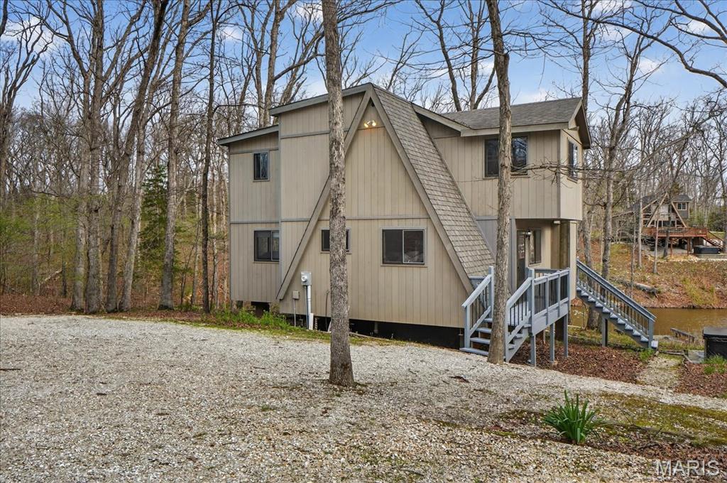 Escape to your own private retreat in the highly sought-after Innsbrook community, where nature, luxury, and resort-style living come together seamlessly. Nestled on over 1.3 wooded acres with waterfront access, this stunning A-frame home offers breathtaking views and a true sense of tranquility. Inside, you’ll find an open and inviting floor plan with soaring vaulted ceilings, warm wood-clad interiors, and expansive windows that bring the outdoors in, creating a cozy yet elevated atmosphere. The kitchen features custom cabinetry, stainless steel appliances, and a breakfast bar that flows effortlessly into the dining and great room, perfect for gathering and entertaining. Offering 3 bedrooms and 3 full baths, including a lofted upper level, there is ample space for guests to relax and unwind. Step outside to enjoy your private dock, fire pit area, and multiple outdoor living spaces designed for entertaining or peaceful evenings surrounded by nature. As part of Innsbrook, residents enjoy access to a premier resort community with lakes, beaches, hiking trails, a championship golf course, fitness center, pool, outdoor concerts, and year-round events. Whether you’re looking for a weekend escape or full-time living, this property offers the perfect blend of privacy, recreation, and lifestyle.