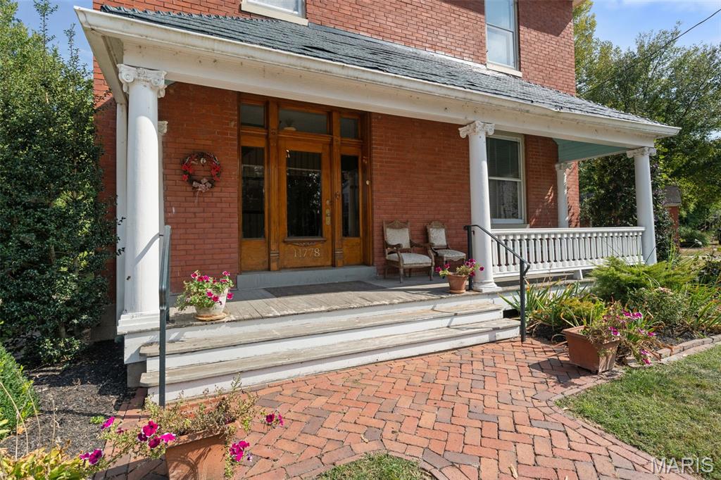 At the doorstep of MO wine country & mere steps from the Katy Trail, this grand residence was built circa 1900 when Highway 94 was just a dirt road. Lovingly cared for by a dedicated steward, each room has been carefully restored with attent the finest materials. From the basketweave brick walkway to the front porch with swing & “haint” hued wainscoting, to the elegant front door & entry foyer with a sweeping stairwell, wood lattice & pillars that separate the formal living & dining rooms with original fireplace mantles. The oversize kitchen, boasts beautiful cabinetry, a center, island & wet bar with half bath and main level laundry nearby. Upstairs are 3 oversized bedrooms one with en suite bath & an oversized full with claw foot tub & shower. Most recently a primary residence, but easily interpreted as a bed & breakfast, the 3rd floor has guest suite potential with plumbing roughed in & ready. Built solid from the stone foundation up, the stamped metal roof adds to the charm as do the rear porches & outdoor gardens. Plus an oversized 2 car garage completes the pastoral package. As country get-away, bustling business, or vacation rental, opportunities, abound to enjoy this quaint enclave just 3 miles from historic Washington, MO with it’s variety of shops, restaurant & festivals & nestled in rolling hills, vineyards & farmland with a glorious landscape for recreation, whether biking the trail or fishing the Missouri River. Near Nobeleis & Blumenhof Wineries & the historic Daniel Boone Home. $22K on NEW SEPTIC & DRAIN FIELD Jan. 2026