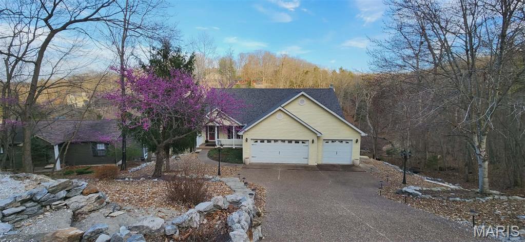 Where luxury meets comfort and entertaining, this beautifully updated 3-bedroom, 3 full bath, 3-car garage over 3000 sq ft lakefront home on the MAIN LAKE offers an open floor plan with incredible living space that flows seamlessly throughout. From the moment you step inside, you’re welcomed by stunning white shiplap accents and a warm inviting design, full remodeled great room with gas stone fireplace elegant built-ins that blends style and function. The home features a gorgeous all-new Four Seasons room with a 12-foot sliding door that captures breathtaking lake views, creating the perfect space to relax year-round. The gourmet kitchen with custom cabinets granite countertops stainless steel appliances with a nice pantry. The primary suite offers a custom coffered ceiling, double vanity, and generous closet space, while the convenience of main floor laundry adds to the ease of everyday living. The fully finished lower level is designed for entertaining, complete with two additional bedrooms, a full bath, a full bar, and family room with a wood-burning fireplace, with walk-out access to a deck and hot tub overlooking the water. Outside, enjoy over 94 feet of shoreline along with a 16’ x 12’ concrete dock, 10-foot ramp, and an aggregate patio featuring a wood-burning fire pit that can easily be converted to gas. The property also includes a bocce ball court, making it ideal for hosting and outdoor enjoyment. With 90 feet of road frontage, off-street parking, an aggregate driveway, and a brand-new roof, this home combines both luxury and practicality. This is truly a must-see home—you will not be disappointed. Located within the sought-after 24-hr gated Lake Sherwood community, you’ll have access to incredible amenities including lake access, boating, fishing, community center, beach, lakeside grill, campgrounds, lakeside pavilions a marina. 6 lakes from 3 acres to 130 acres and amazing sunsets! In Washington School District minutes from beautiful downtown Marthasville. 35-min drive from Chesterfield and located minutes to Missouri’s finest wineries.